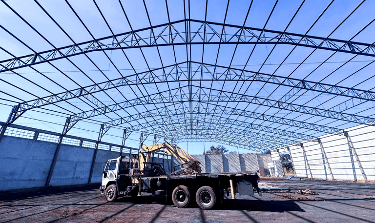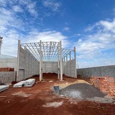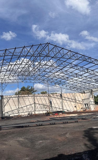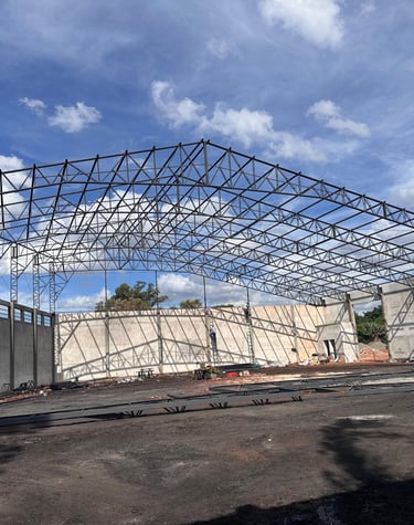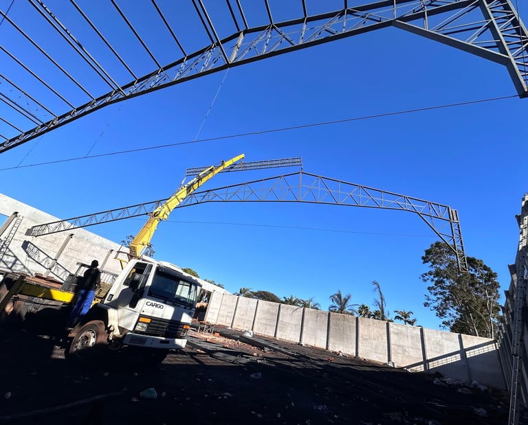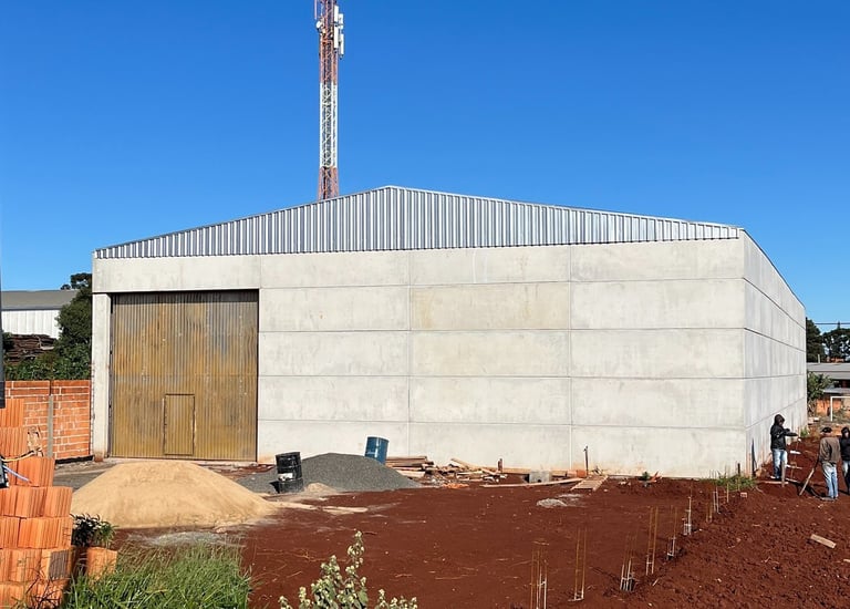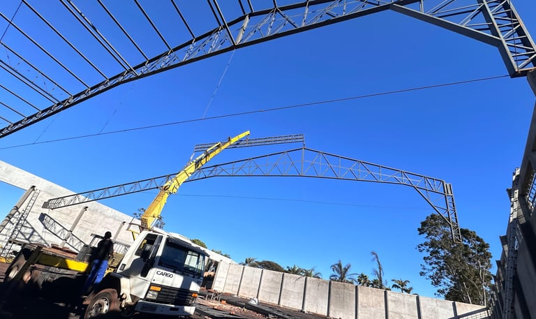 Nossa galeria reúne imagens de obras concluídas e em andamento, destacando a aplicação de pré-moldados e estruturas metálicas em diferentes segmentos.
